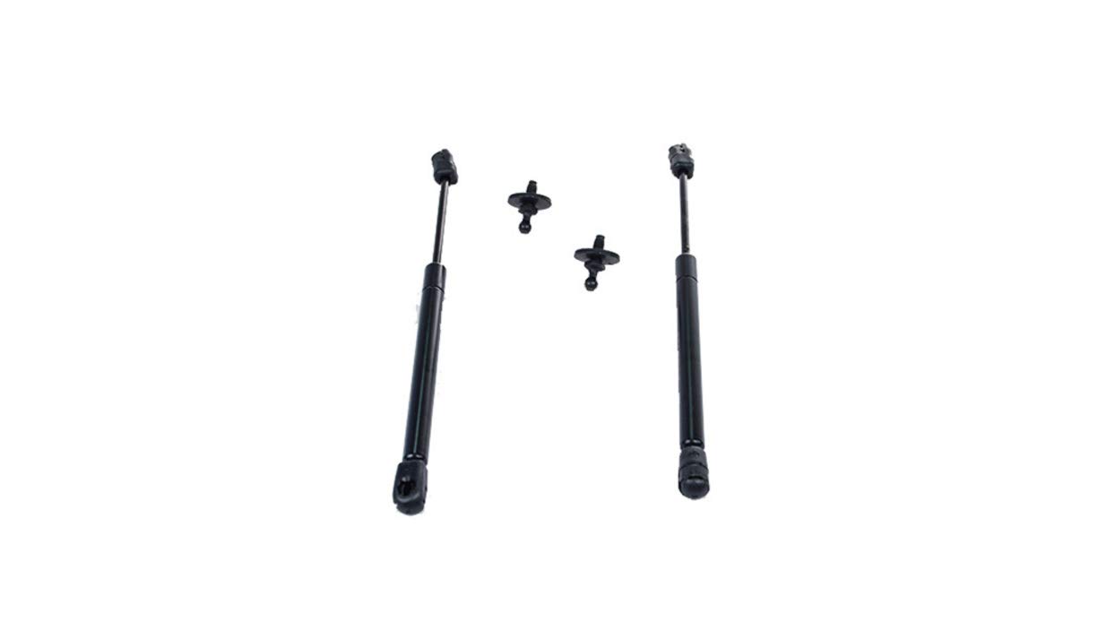 - Contains two gas struts and fasteners to replace single hood prop rod